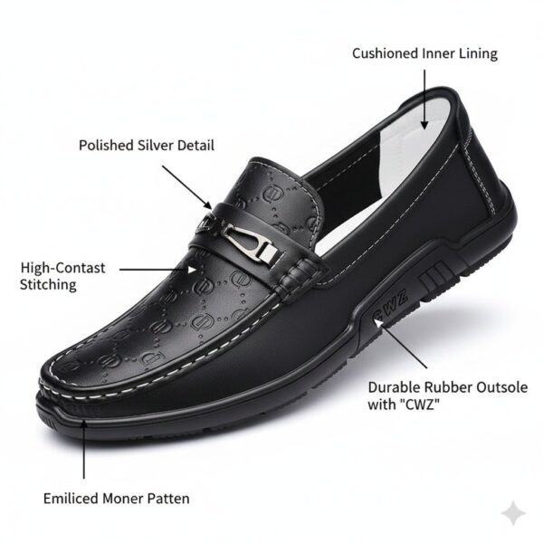 Crafted for the modern gentleman, these executive loafers combine refined detailing with superior comfort. The premium finish, flexible sole, and timeless silhouette make them perfect for business and formal wear.
